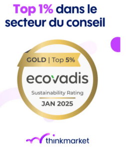 Fiers d’annoncer que pour la 2ᵉ année consécutive, Thinkmarket confirme sa médaille d’or EcoVadis France, consolidant ainsi notre position avec une progression de 10 points supplémentaires cette année !