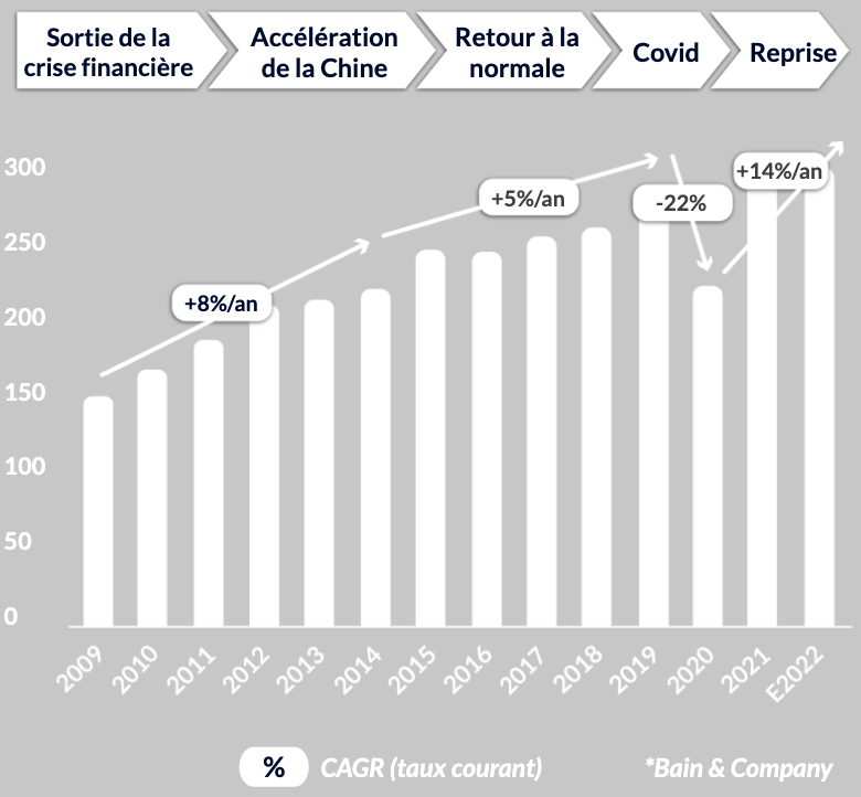 - Déclin ponctuel du marché Chinois : une politique « Zéro Covid » contraignante qui ralentit la croissance et le pouvoir d’achat des Chinois, bien que la demande pour les biens de luxe perdure